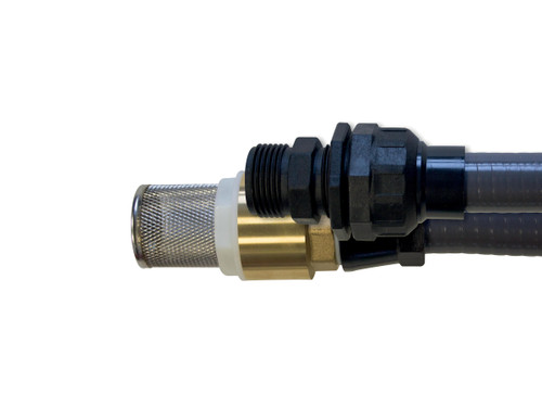 Water suction hose with plastic fittings and brass filter